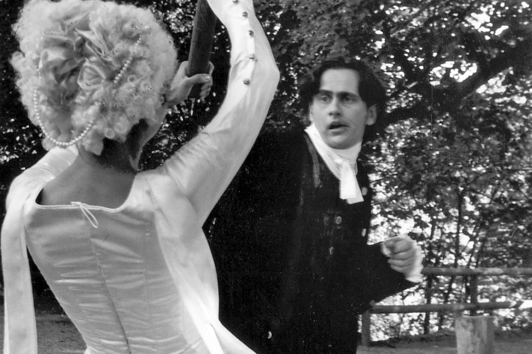 „George Dandin“, die erste von drei Inszenierungen für Schwarzburg stand unter keinem guten Stern. Die Premiere fiel ins Wasser und wurde ersatzweise im Kaisersaal ohne Bühnenbild improvisiert. Selbige war aber ein großer Erfolg. Von Anfang an war mir eine klassische Stück-auswahl wichtig. Mit dem Ziel, die Besucher von Schwarzburg nicht nur zu unterhalten, sondern auch zu fordern. Schwarzburg (die Perle Thüringens) hatte zu dieser Zeit ca. 1000 Besucher pro Einwohner jährlich, die meist nur für eine Nacht blieben. Für ein Sommertheater die idealen Voraus-setzungen. Eine Spielzeitverlängerung auf drei Sommermonate, konnte ich vor Ort leider nie umsetzen. In dieser Inszenierung von Tobias Materna habe ich die Titelrolle gespielt und dieses Sommertheater produziert.